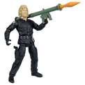 Armed to the teeth, he comes fully equipped with a rocket-firing missile launcher, rifle, machine gun pistol, handgun, and survival knife.